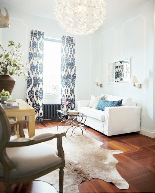 just one of my favorite living rooms ever, via lonny (which has a delightful new website, by the way). i don't know what it is about this room that i love so much, but i have a sneaking suspicion that part of it has to do with that giant daisy-like lamp (which is from ikea). this is a lot of blue, to be sure -- i would probably throw in some other color in pillows on the chair and sofa and art on the walls -- but it's so bright and cheerful, and i just love it. plus, we all know i'm a fan of blue in the home, anyway.